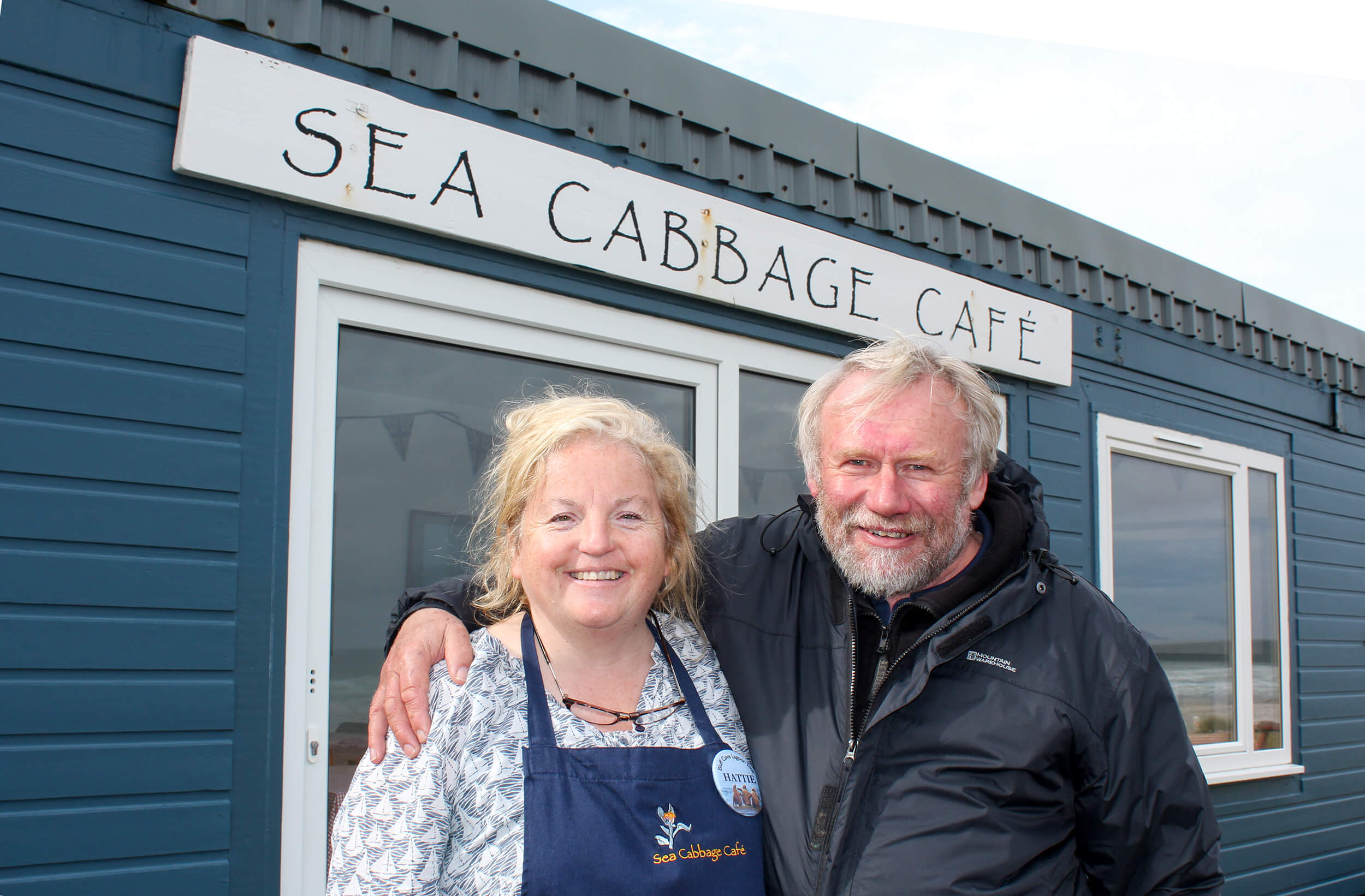 Kevin and Hattie outside the Sea Cabbage Cafe